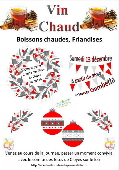 Vin Chaud : samedi 13 décembre 9h30 Place Gambetta